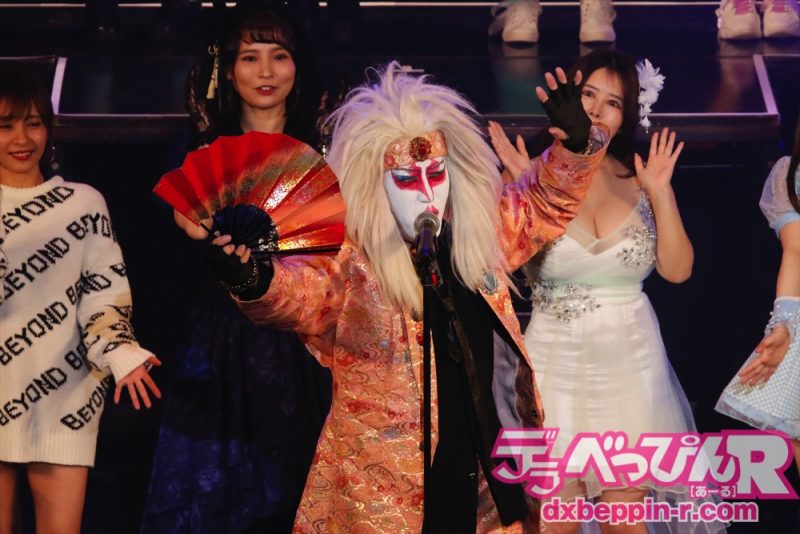 出演アーティストと一緒に「お江戸-O・EDO-」を振り付きで歌いステージを華やかに彩った。このようなスペシャルゲストが登場するのも同ライブの魅力で、芸能界とアダルト界を繋ぐ役目も果たしているのだ。