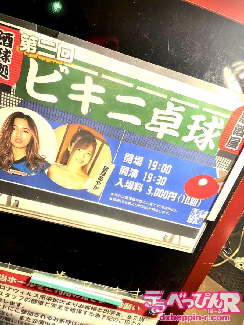 今回、またこのビキニ卓球居酒屋と言う心惹かれる言葉を見つけて調査開始。なんと大好きなもっちーこと望月あやかちゃんが参戦するとの情報が、これは「行け!」と言われてる気がして行ってきました。