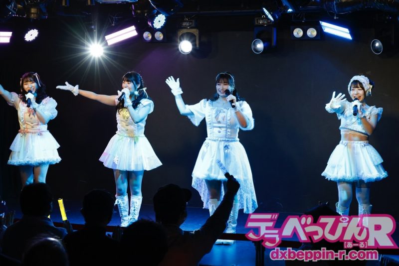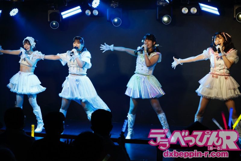 クラウドファンディングの資金で作った衣装を着た4人はオリジナル曲の『Welcome mumk World!』を熱唱。デビューライブにしていきなりのオリジナル曲発表で勢いづきます。しかも、ソロのラップパートもあり4人の個性が活かされているので、今後、ファンもコールがしやすい楽曲になっています。