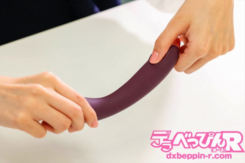 話だけを聞くと中に挿れるのは怖いかなと思うんですけど、つっかかる感じもなくスムーズに挿入できます。本体のカーブの設計からウーマナイザーはこだわっているので、しっかりとGスポットにあたる角度になっています」