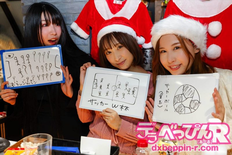 お酒にサイコロトークにと盛り上がったところで、こちらは名物コーナーになりそうな、お絵描き伝言ゲームが開始されます。前回は出だしのここなちゃんが「AV男優」を描いたのに、最終のみひなちゃんには何故か「磯辺巻き」と伝わってしまった経緯があるため、なかなか難しいことが判明したゲームです。