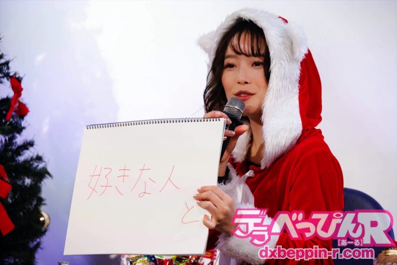 「性」の漢字では、「電マで潮を吹きたい目標があったんです。トレーニングはしていないけどいろんな女優さんにコツを聞き、とりあえずいっぱい水分を摂り、力を抜くことを教わりました。電マでオナニーをしたら今年の4月くらいに潮を吹けるようになったんです。脱衣所で電マをあててオナニーをしていたら『グジュグジュグジュ』と音がして潮が出ました。VRは迫力が違うのでVRで潮吹きを見せたいです。それが来年の目標」と「性」の漢字にちなみ、潮吹きができるようになったとファンに報告。さきほどの「思」とはギャップがありすぎる刺激的な内容でした(笑)。