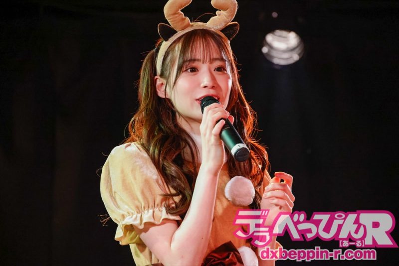 MCでは「サンタクロースの衣装を着ようと思ったけどみんなが着てくるので、あえてこちらの衣装にした」とミニスカートのフリフリアイドル衣装で登場。そのかわいさが引き立ちます。