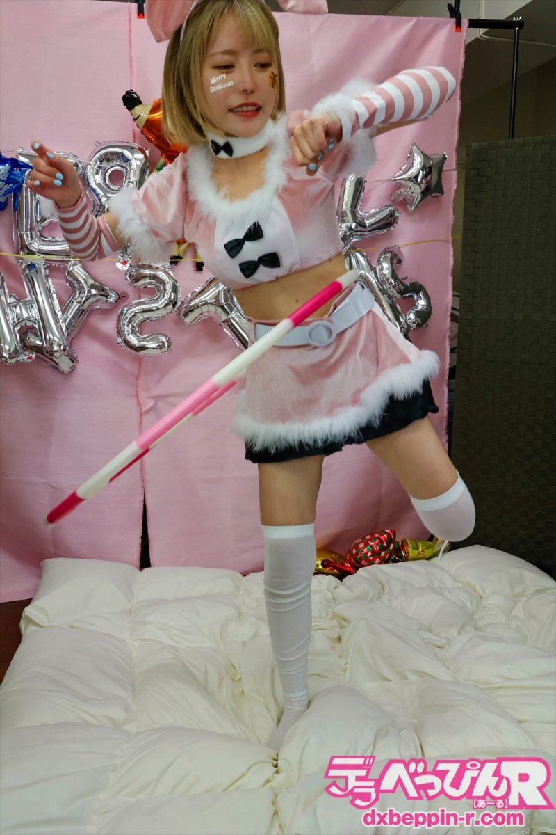 そしてラストは「AV女優たるもの腰使いが大事」とのことで、フラフープにチャレンジ。ここみちゃん、ひめちゃん、ひめのちゃんが選抜メンバーとして片ヒザ着きや片足上げなどに挑戦。3人とも体幹が優れているのか見事クリアしました。今後、3人の作品ではその強い足腰に注目しましょう!