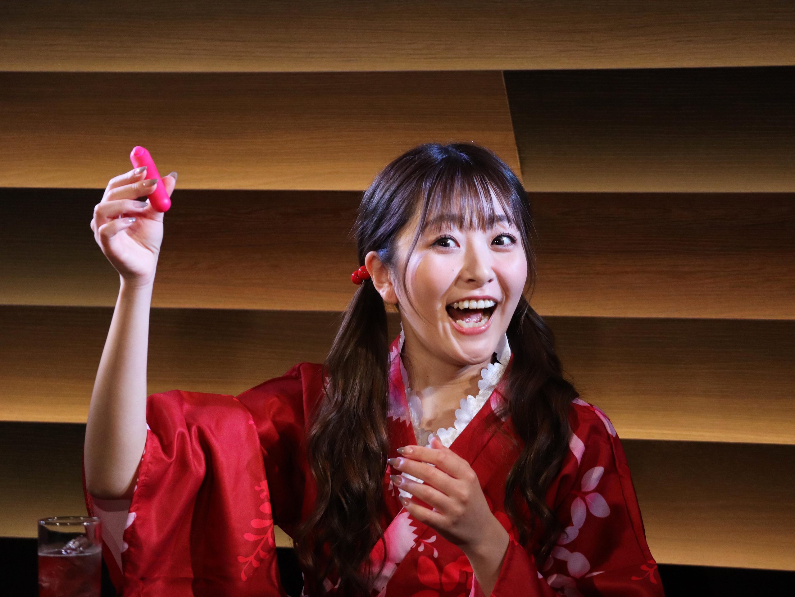 デビュー20周年を記念してアソコの毛をツルツルにした紗々ちゃんが、乾杯の音頭を「パイパ〜ン!」とコールしたところで、『あぶ熟』名物のローターシャンパンの説明が始まりました。