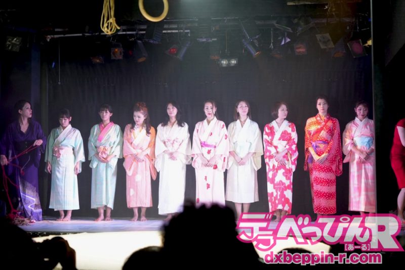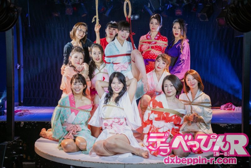 こんな感じで9人×約20分の緊縛撮影会のステージ。最後は豪華に全員集合の緊縛撮影会。めちゃくちゃ豪華だったなぁ。ひな祭りのひな壇みたいだったよね。