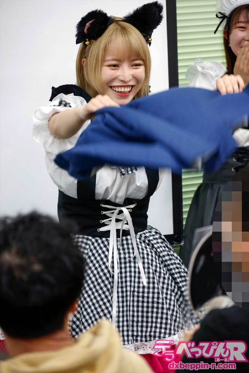 グループのオリジナルメンバーで、今回2回目のイベント登場となったここみちゃんは特技を聞かれると、「ヒップホップダンスと熱波師です。サウナが好きで熱波師の検定を全部取ったんです。みっぴぃなをやりながら副業で熱波師もやいたい」と言い、ジャケットをバスタオル代わりにして、熱波師姿を実演してくれました。
