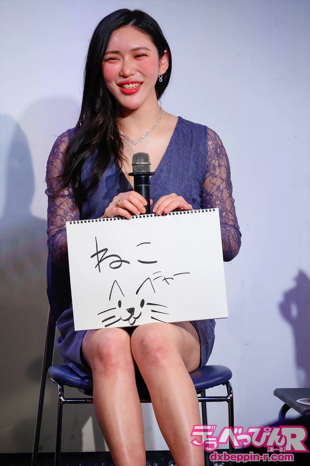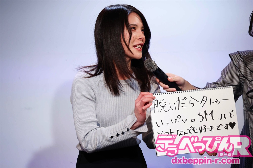 フリップに書かれていた自己紹介を振り返ると、彩ちゃんは「2021年10月にアイポケ(アイデアポケット)さんよりデビューした塩見彩です」、「1995年6月17日誕生!!」と豪快に書かれており、遥希ちゃんは「デビュー作は『タトゥー美女AVデビュー 人気女王様の責められたい願望告白』です」、「趣味はお笑い、アニメ、映画を見ることです。1日1映画を見ていました」、「脱いだらタトゥーいっぱい。SM、ハード、ソフトなんでも好きです」と詳細に書かれていました。
