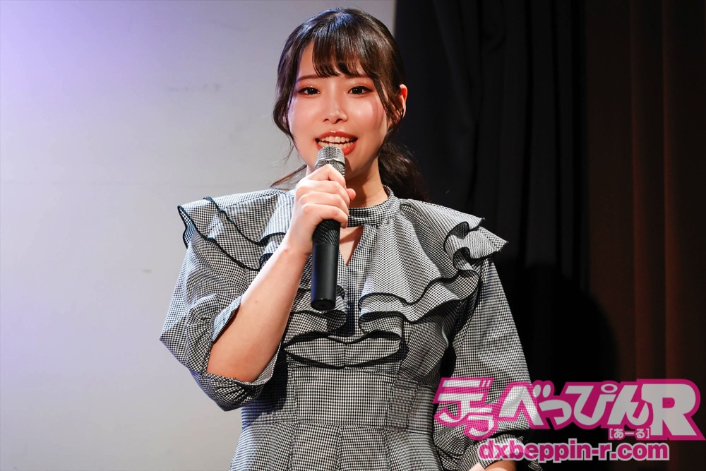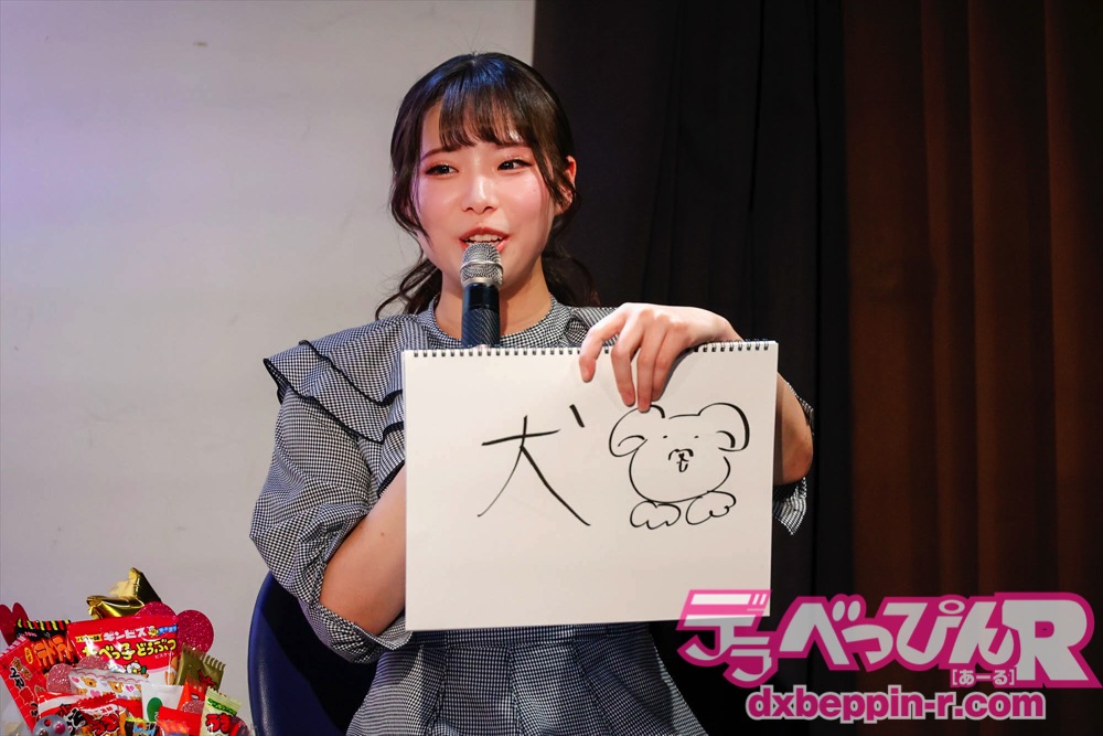 彩ちゃんの音頭で乾杯をしたあとは、同イベント初登場の彩ちゃんと遥希ちゃんが30秒で自己紹介をします。ゆっくりと自己紹介をすればいいのですが、このスリリングな展開が同イベントの持ち味。2人とも用意したフリップを慌ててまくりながら自己紹介します。