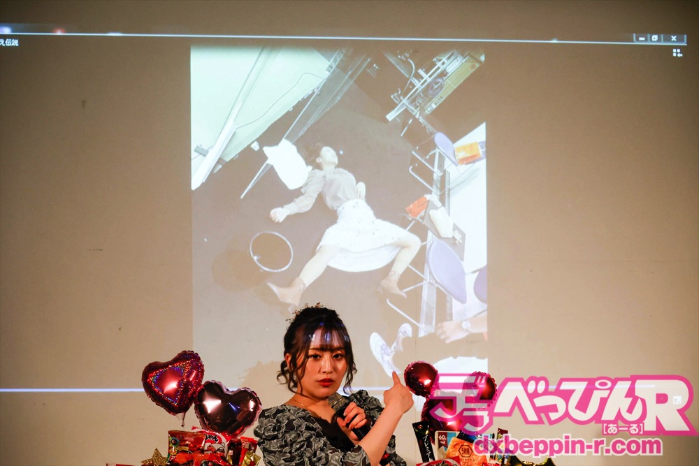 前半は「葉月もえ振り返り写真館」と題して、これまでレフカダ新宿で行われたイベントや、パラダイステレビで放送された番組の思い出写真がスクリーンに写し出されます。