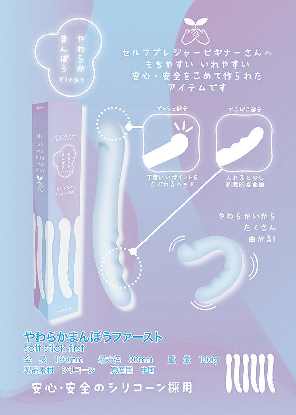 ── 肩すかしをくらったわけですね(笑)。アダルトグッズで良く使われているポップな感じのピンクは私もだいぶ飽きましたから、『やわらかまんぼうファースト』の薄いブルーは可愛くてとてもいいと思いました。
