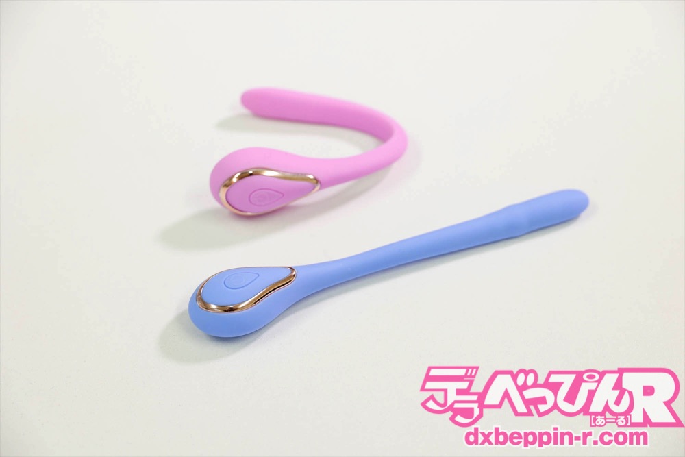 「面白い形をしていますが、こちらは10種類の振動を楽しめるローターです。基本はスティック部を曲げて口の中に入れ、振動した状態でフェラチオを楽しめるグッズになっています。先端が細い方をクリトリスや乳首に当てて、ローターとしても使うことができるんです」