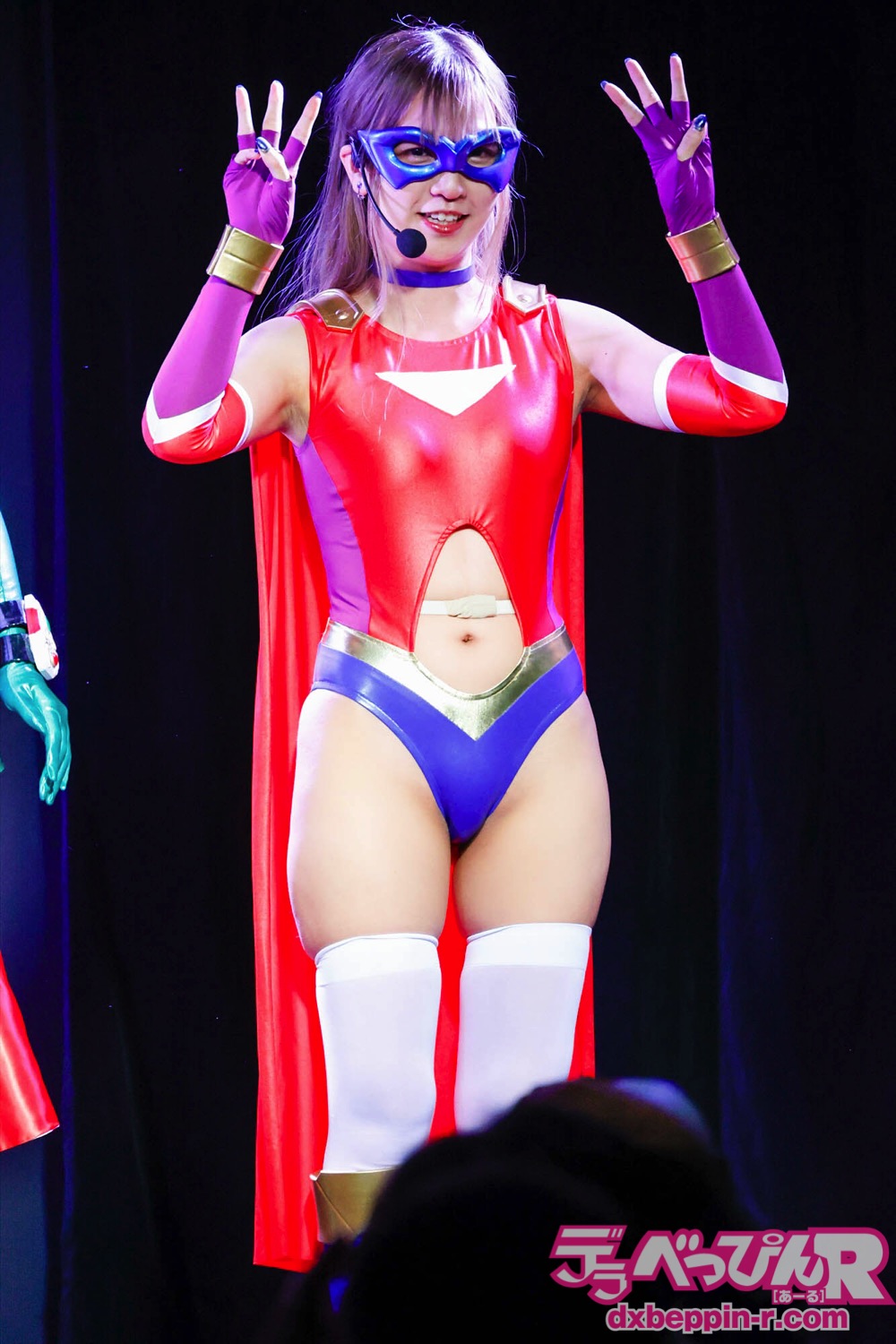 さらちゃんは「おはち〇ぽ。加賀美さらです」とツイッターでお馴染みの挨拶をし、「ヒロインショーは2回目なんですけど、久しぶりなのでドキドキしています。応援してくれると嬉しいです。今日は楽しんでいってください」とにこやかに挨拶。
