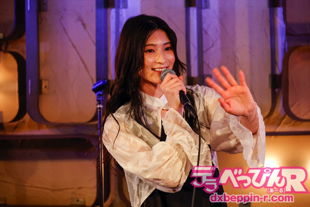 1曲目は『ハナミズキ』(一青窈)を繊細かつ力強く歌い、1曲目からファンを惹きつけます。MCでは「人前でしゃべるのは得意じゃないんですが、みなさまの前に立てることを感謝します。1人で上京してきて、いろいろ思いがあって、引きこもりながら聴いていた曲でした」とコメント。