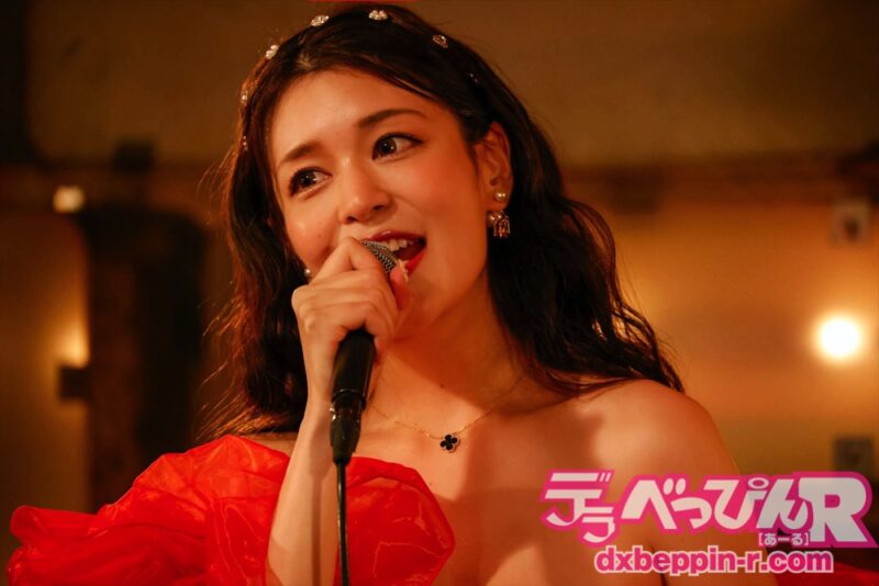 メアリーちゃんにしか着られないであろう、セクシー&ゴージャスな深紅のドレスで登場し、『花火』(aiko)を力強く歌いライブはスタート!