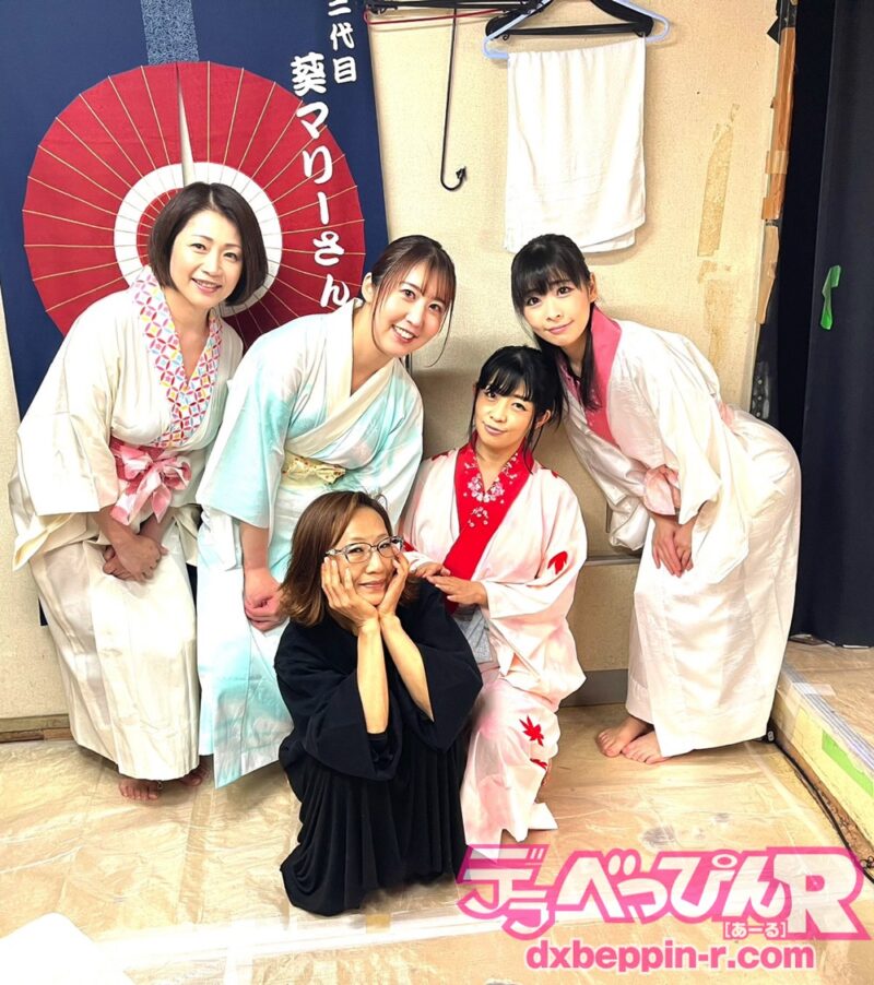 ステージ登場はみんな長襦袢で。出番前にそれぞれ着たい襦袢を選んでもらってます。