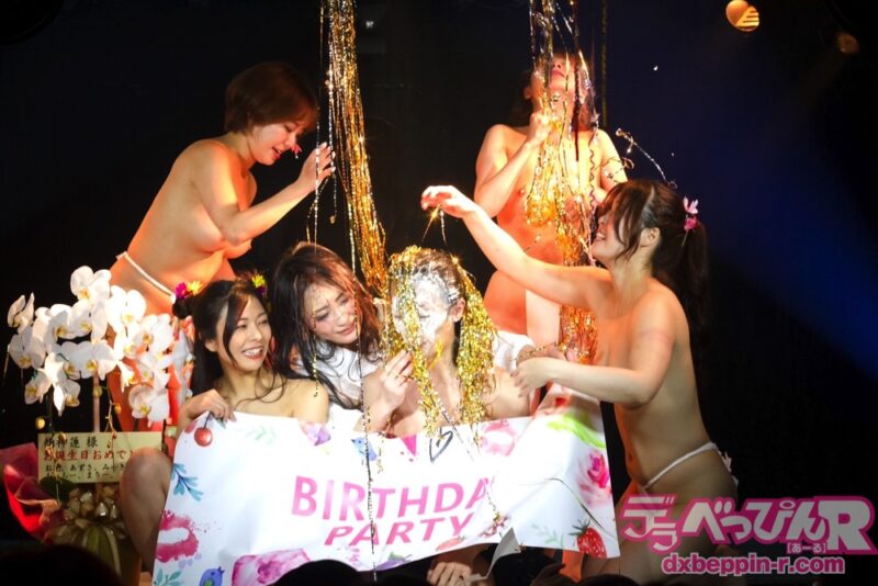 お客様全員からのクラッカーを浴び、誕生日ケーキを顔面で受け止める蓮。