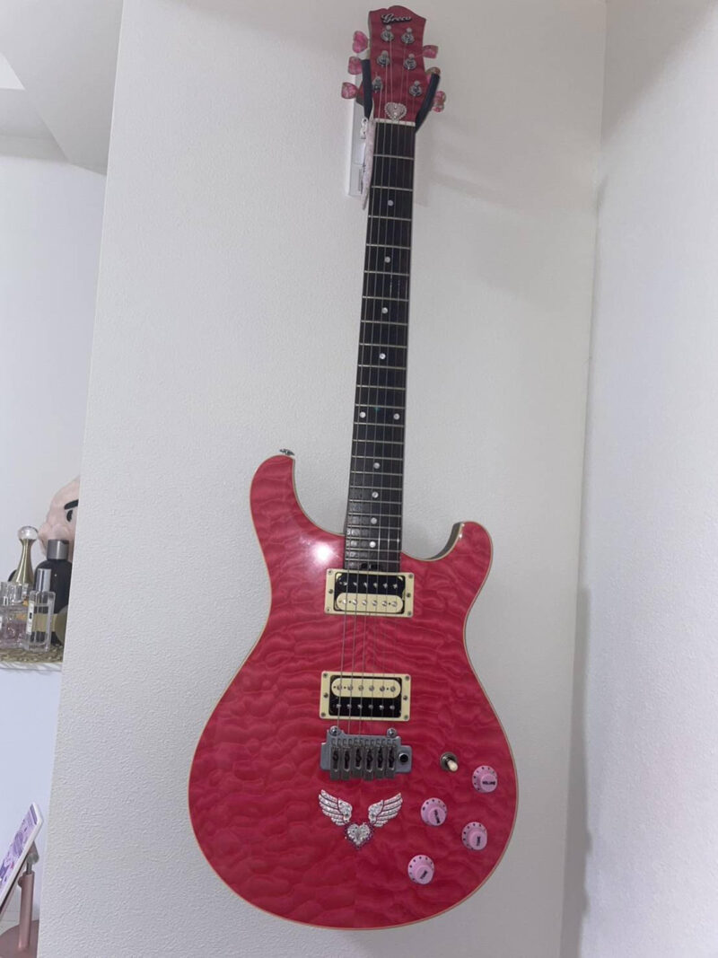 ボディとヘッドにスワロフスキー付けて、ボリュームノブを全部ピンクにして、ペグをハートにして……