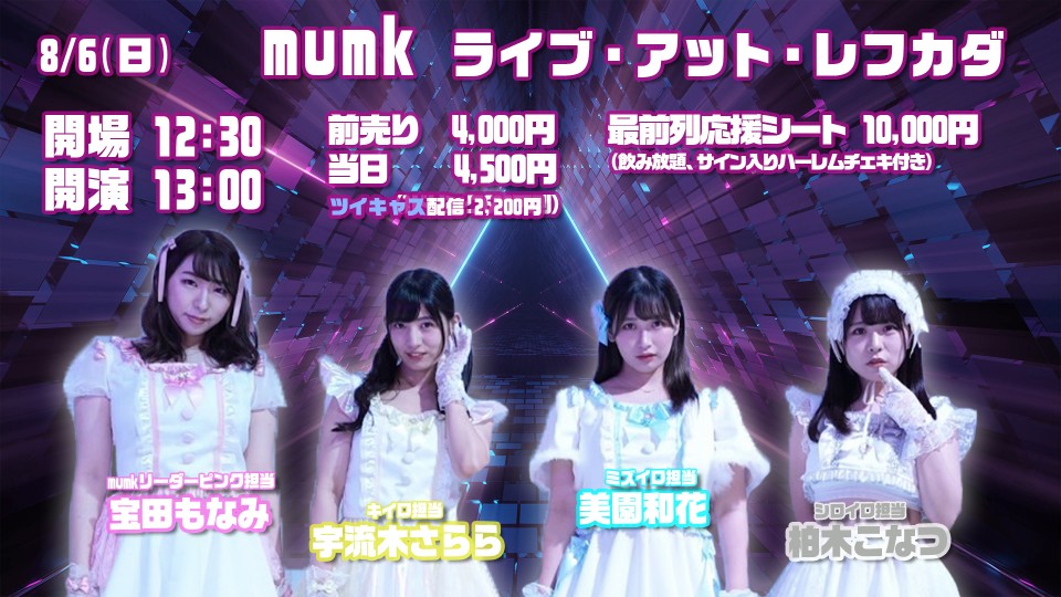 昨年12月、昼夜ともに超満員の観衆の中でデビューライブを行ったセクシー女優アイドルグループ・mumk(宝田もなみちゃん、宇流木さららちゃん、美園和花ちゃん、柏木こなつちゃん)が満を持して2回目のライブを開催!
