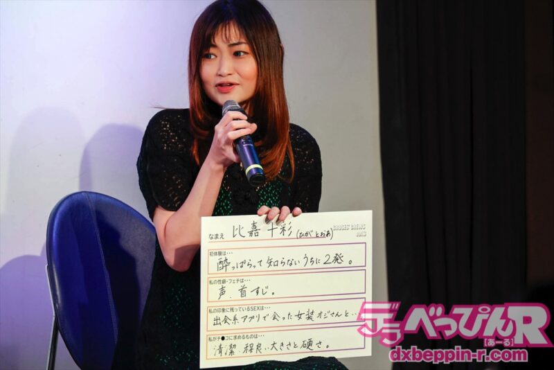 まずは「初体験話」から入ると、おとなしそうな十彩さんが「酔っぱらって知らないうちに2発」といきなりかましてくれます! どうやら初飲酒で初エッチをした模様。「起きたら後悔したことだけは覚えている」とのことで、それがきっかけでお酒は飲まなくなったそうです。