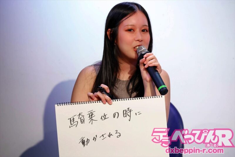 続いては「私の許せない言動」がテーマとなり、ゆずちゃんは「エゴマゾ」が許せないと熱く語り、詩織ちゃんは「騎乗位で腰を動かされること」と言及し、ゆずちゃんを相手にその腰振りを再現してくれました(笑)。