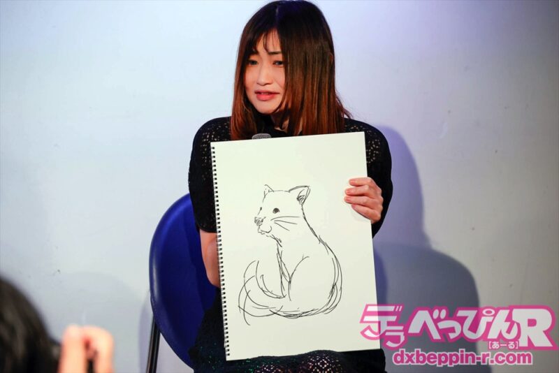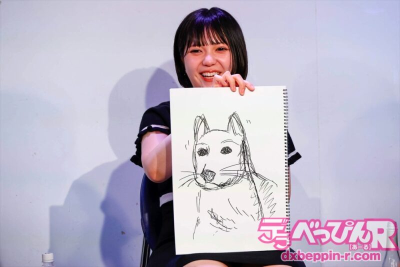ゲームコーナーでは「お絵描き対決」が行われ、犬とピッチャーが出題されますが、ゆずちゃんと十彩さんが絵の才能を見せ付けてくれました。そこで詩織ちゃんには罰ゲームが科せられビキニ姿を披露。イベントは撮影OKのため、無数のシャッターが切られます。