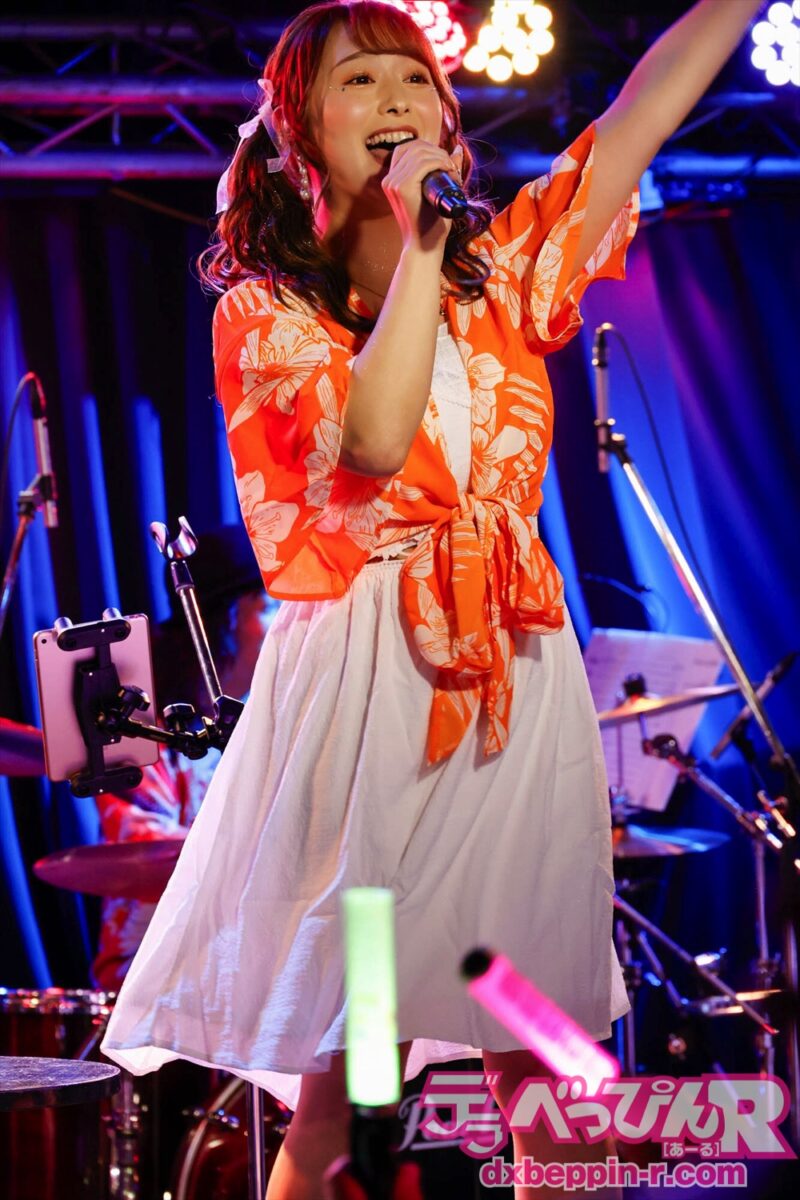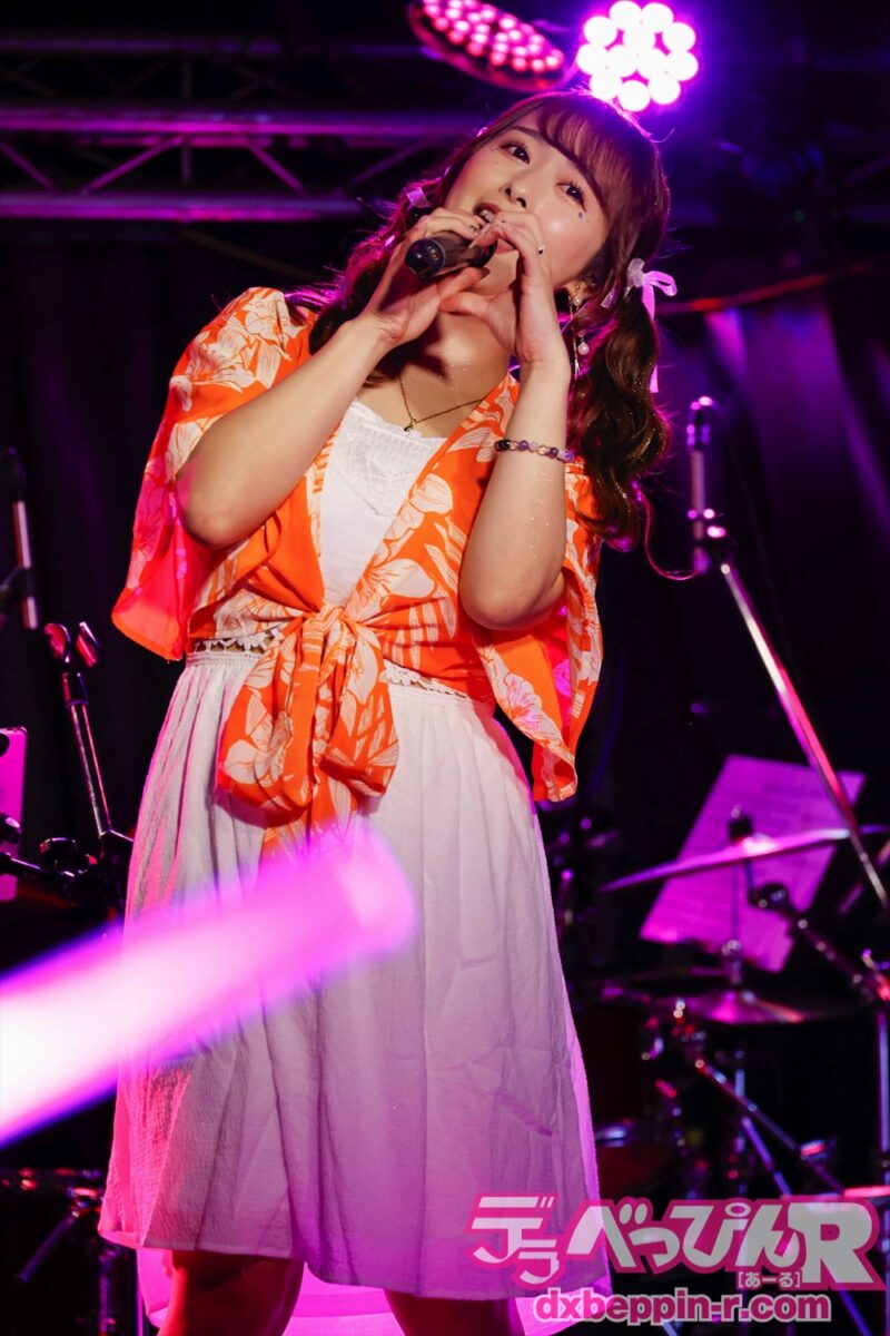 序盤から盛り上がったところで、夏ソング、青春ソングをカバー。会場をさらに熱くさせます。すると会場からは「かわいい!」の声援が飛びます。