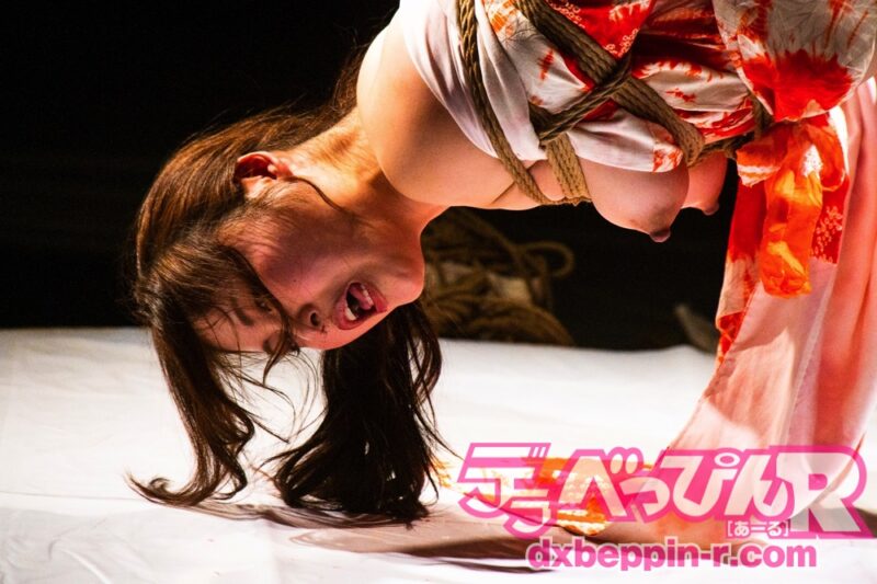 そして、お次はあかねちゃん。いよいよ真打登場と言わんばかりに場内が再度、緊張モードへ。この2人は常に本気。いつだって真っ直ぐに向き合う2人。縄がある場所では互いに手を抜く事がない本気勝負。SM界隈で真剣に闘える受け手は数人しかいないけど、その中の1人があかねちゃん。あかねちゃんに関して言えば闘いの相手もプロ中のプロしか相手にしてない。縄会のトップ陣しか闘えない恐ろしい気迫、目力、精神力、全てを備えている。