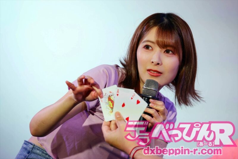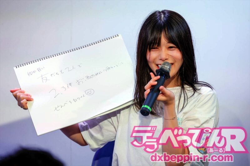 続いて「第1回如月ゆの選手権」が行われます。質問を出されたゆのちゃんはもちろん正解を書き、もう一つの答えはパラダイステレビスタッフとさつきちゃんが書き、どちらがゆのちゃんが書いた答えかをファンが当てる参加型のクイズになっています。