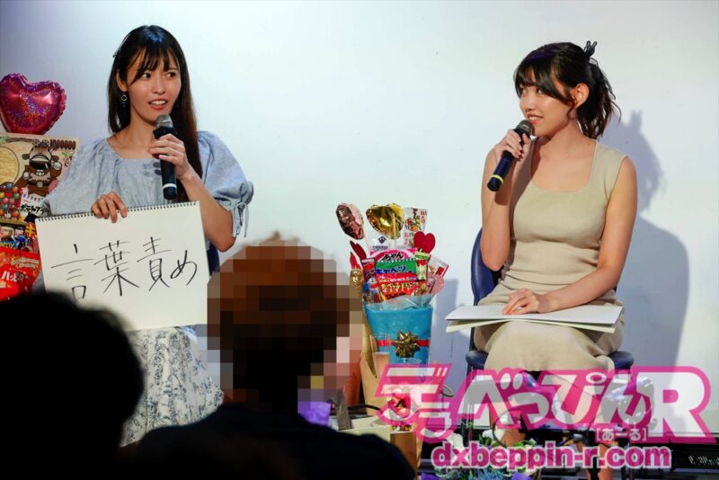 まずは「私だけが知っている」と題して、プライベートでも仲がよい、うみちゃんとさくらちゃんが、テーマに沿ったお互いのイメージを発表します。ちなみに2人はAVデビュー前からの仲良しで、付き合いは7年になるそうです。