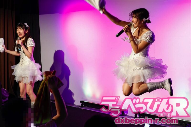 2曲目は初期の名曲『マシュマロ☆ファイト』を歌うと、2人とも「熱気が気持ちいい」と大満足。3曲目はお兄ちゃんたちのタオルが会場を舞う、『激アツハート YES,I LOVE YOU』を熱唱。