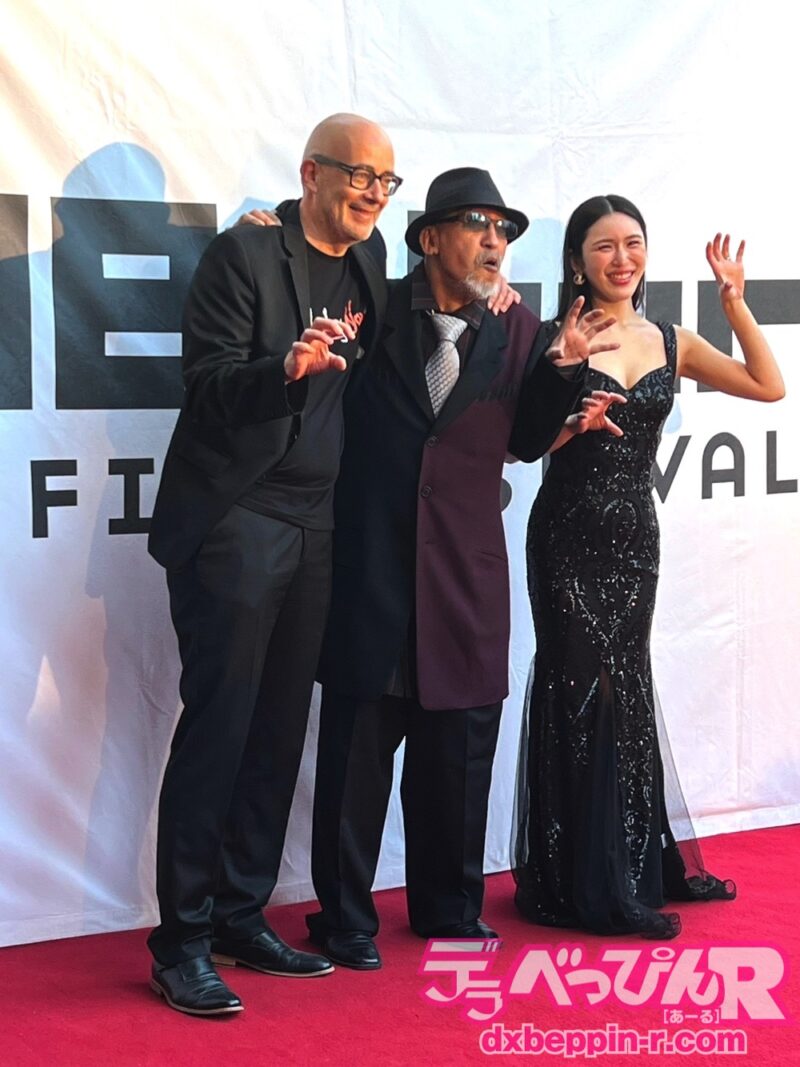 そして、やっぱりやってくれましたよ、いつものTOHJIROポーズ。例のガオーです。あれを映画祭のプロデューサーと共に3人揃ってガオーポーズ。しっかりTOHJIROポーズも海外へ渡りましたね。良かった。