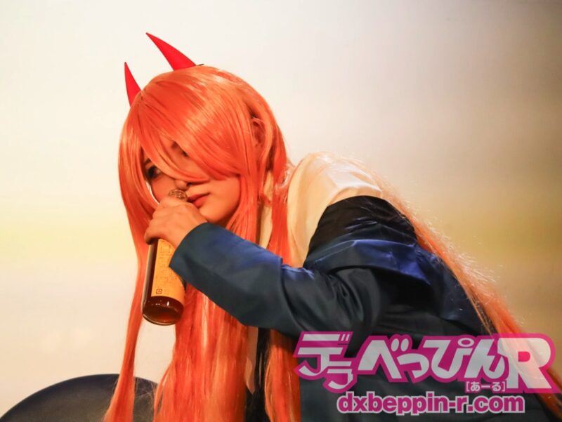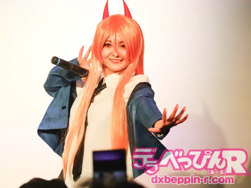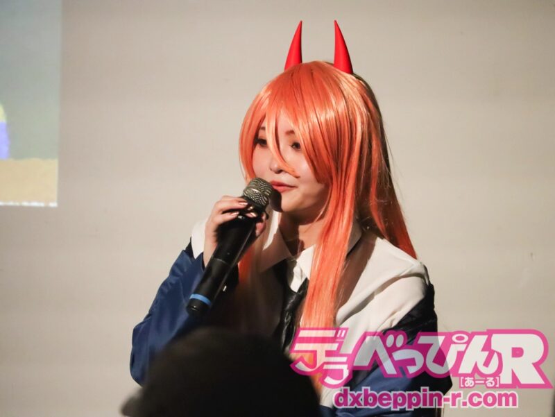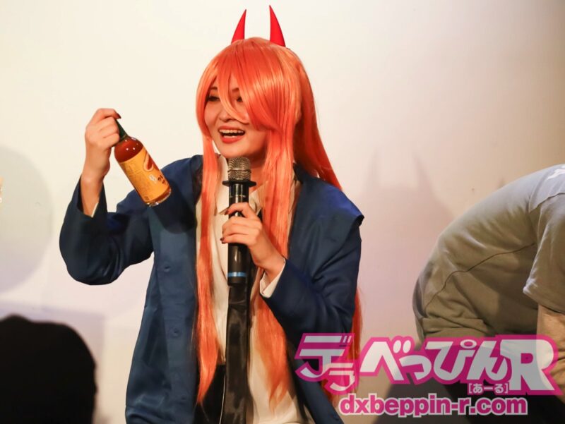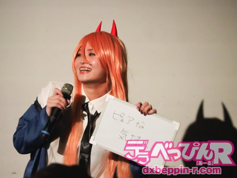 せっかくなので、一人ひとりのコスプレ姿を紹介していきましょう。まずはイベントホストのぺちが登場。チェンソーマンのパワーちゃんのコスプレです。すごく似合ってる!