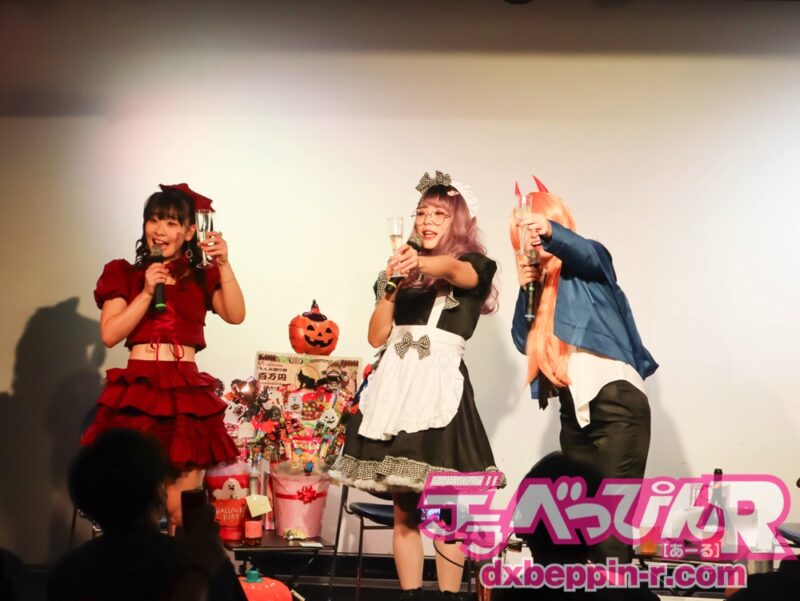 10月29日、新宿レフカダにて、ぺちこと音琴るいちゃんのイベント『ぺちズム~ぺちが気になる人と好き勝手トークするイベント-Stage13-』が開催されました。今回はハロウィンスペシャルということで、ゲストも含めてハロウィンコスプレでの登場。し・か・も、レフカダを代表するイベント女優さんである川越ゆいちゃんと原美織ちゃんを迎えての豪華すぎるお祭り騒ぎとなったのでした!