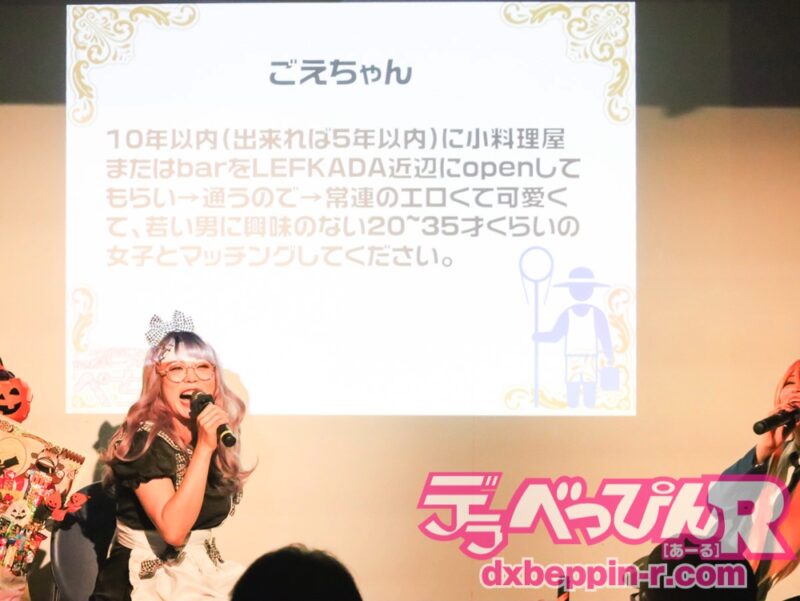 そんな中、ごえさんへのメッセージは……「10年以内に小料理屋をレフカダ近くにオープンしてもらい、エロくて可愛くて若い男に興味のない20~35歳くらいの女子を紹介してください」という私利私欲に塗れたトンデモない注文で会場も騒然。これ、どう考えてもごえさんの負担が大きすぎます(笑)!