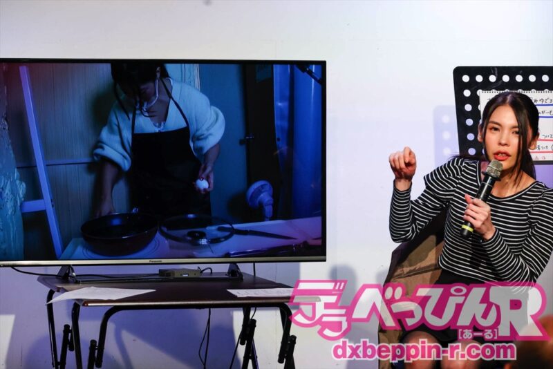 セクシー女優が料理をする姿を生披露! 仲のいいお友達女優2人が交代で厨房に入り、大好きな料理を作り、来場したファンに自慢の料理をご馳走する。