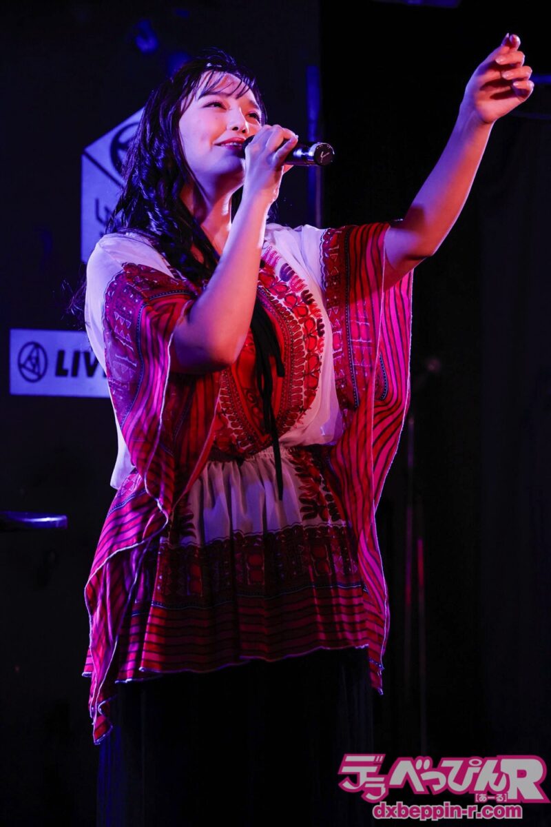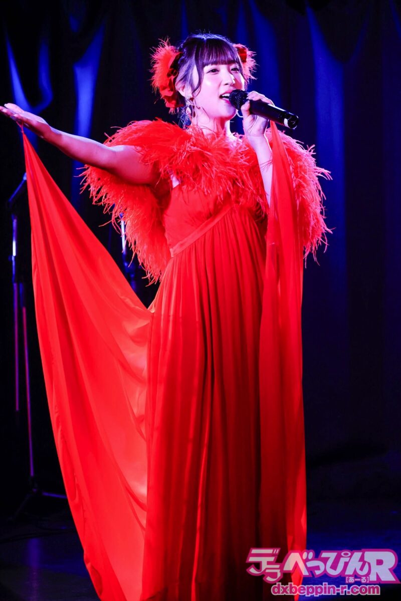 彩ちゃんは2000年代のカリスマアーティストの曲を歌い、会場を盛り上げます。曲後は「ノリノリで歌いました」と笑顔でコメント。
