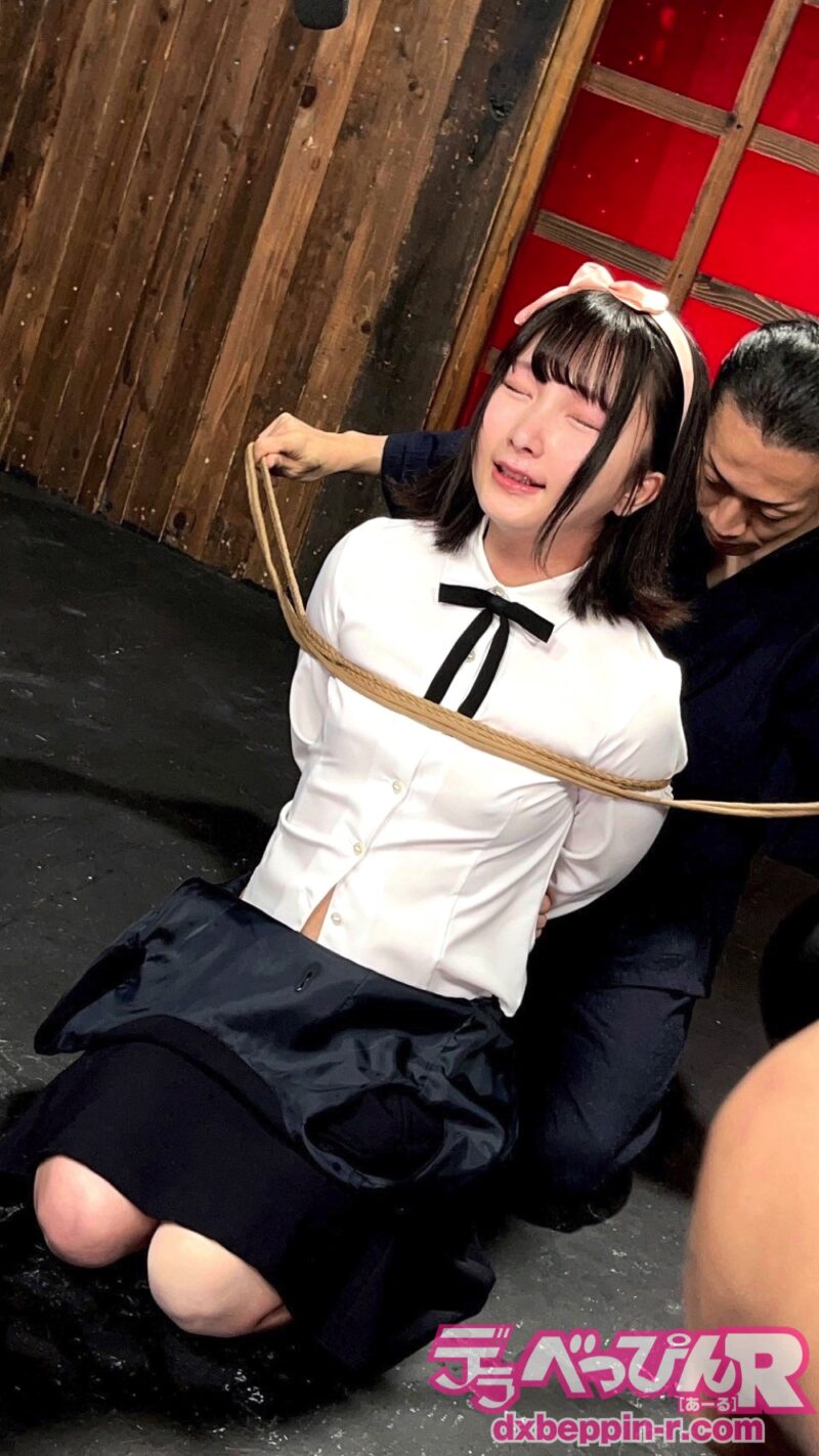 次第に鞭の音も強くなり、縄の数も増えて由良かなちゃんの身体が宙に浮いた。なんとも軽々しく浮いた由良かなちゃん。