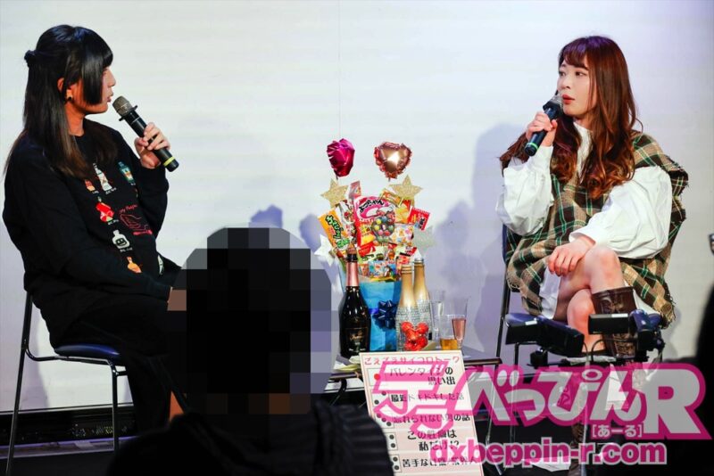 そして、後半はファンからのアンケート質問コーナーに入ります。あらかじめファンが書いたアンケート質問に、2人が答えるコーナーですが、「2024年はなにを絶対にやりたいか?」と聞かれると、蛍ちゃんは「イチャラブ作品に出たい」と、ごえさんは「ストリップに復帰したい」と回答。