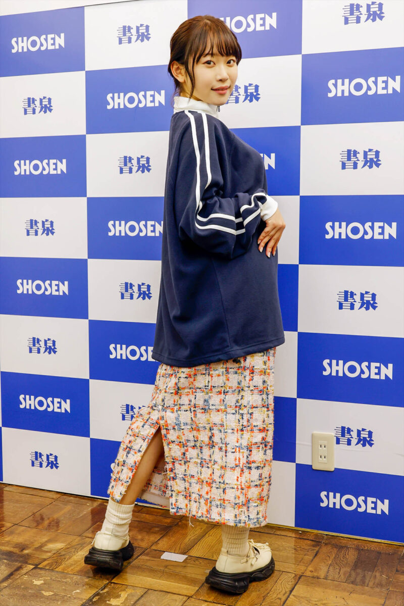カジュアルな私服姿で会場に現れたゆらちゃん。この飾らない気さくな雰囲気が人気の秘訣です。そんなキュートなゆらちゃんが、ヌードポーズブック写真集に心を込めてサインをしている合間に直撃しました。