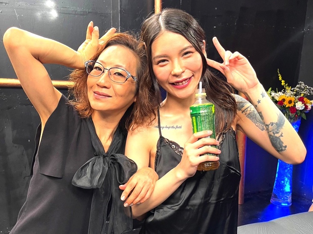 ここで2人にはゆかりのあるTOHJIRO監督とセクシー女優の塩見彩さんがイベントを見学に来て、会場は華やかな雰囲気に。
