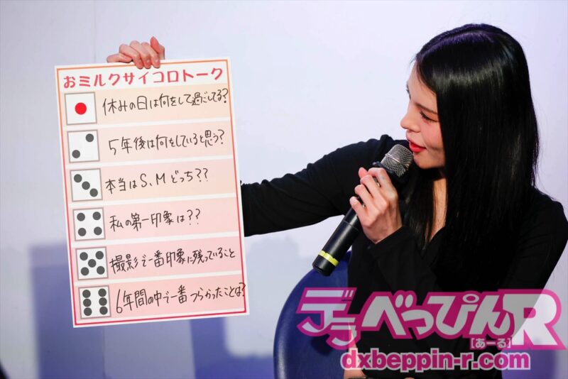 さらに、「5年後はなにをしている?」の目を遥希ちゃんが出すと、あずにゃんは、「AVを辞める理由が関係していて、30歳までには結婚して子どもがほしいんです。20代前半はAV女優をしたけど、子どもを産んだら自由に働けないから、このままAV女優だけで終わっていいのかなって思ったんです。AV女優も好奇心でなったから、30歳まであと5年かと思うと、他のこともやってみようと思うようになって、いま辞めようと決断をしたんです。結婚して子どもを産んだとしても仕事はしているかもしれない。仕事が好きなんだよね。結婚して子供を産んで、働きながら主婦もやっているのが理想かな」と真剣に答えてくれました。