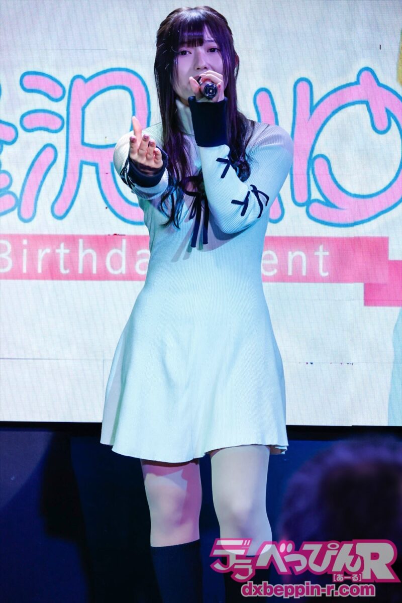 続いてはアニメの挿入歌や90年代のアイドルグループの楽曲を熱唱。カバー曲ですが「みゆみゆワールド」に誘います。歌い終えるとファンからは「最高!」、「かわいい!」の声援が飛び交います。