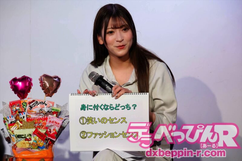 問題では「身につけるならファッションセンス? お笑いセンス?」の問いが出され、めいちゃんが選んだのは「ファッションセンス」。