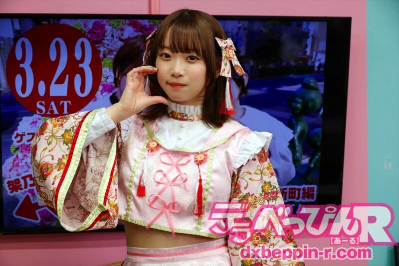 毎回、キュートな姿で登場してくれますが、少し遅いひな祭りということで、和服をアレンジしたピンク色の衣装で登場。めちゃくちゃ似合っています。
