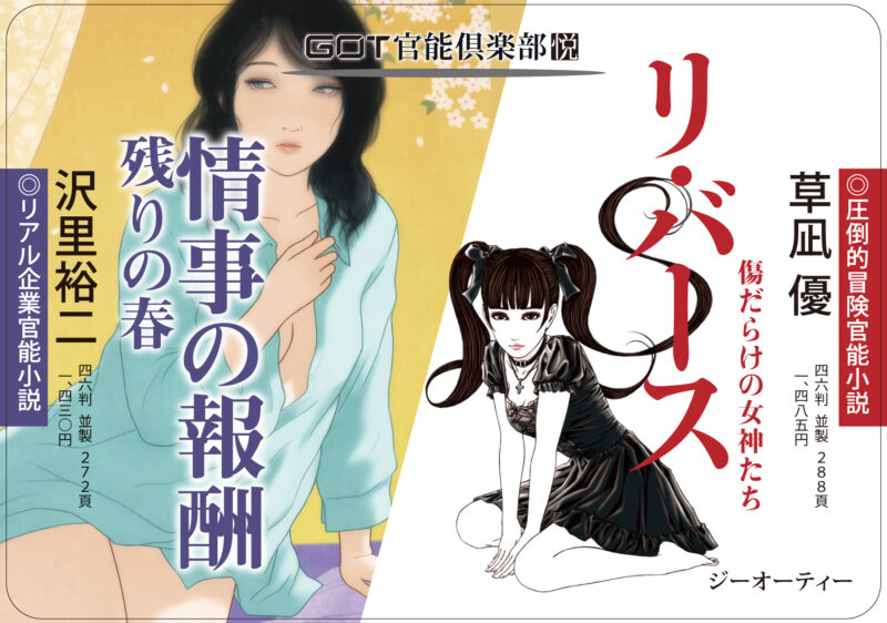 今年3月に立ち上がった新レーベル『GOT官能倶楽部「悦」』。その第1弾として、純情な愛と暴力が過激に交差する『リ・バース~傷だらけの女神たち~』(著:草凪優)、大手広告代理店を舞台に陰謀と愛欲がうごめく『情事の報酬~残りの春~』(著:沢里裕二)が2作同時にリリースされた。実力、人気ともにトップに君臨する2大官能作家たちが挑んだ“新官能”。旧来の官能小説とはどこが違っているのか。そして、これからの官能小説の目指すべき道はどこにあるのか。著者ふたりに対談していただいた。