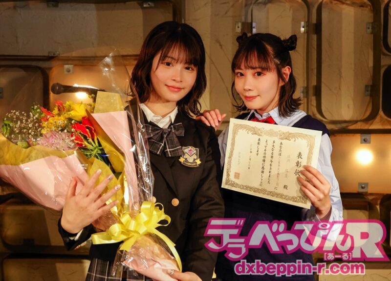 ステージに立ち意気込みを聞かれると、「2022年8月デビューで、お互いにセクシー女優としてやって参りましたけど、『陽葵』ちゃんという名前になってから、この日を迎えるまであっという間でした。『かえで』ちゃんとの思い出は濃かったけど、『陽葵』ちゃんとの思い出は早かったかな。あまり実感がなくてここに立っていますけど、今日は楽しんでいけたらと思っています」とひかげちゃんがコメント。