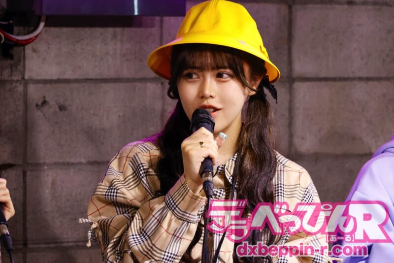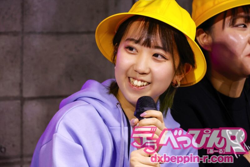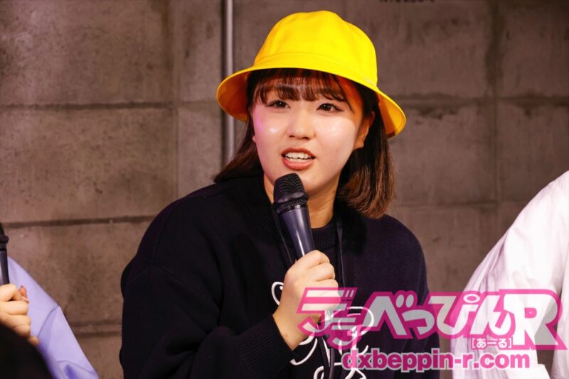 先ほど初体験話を告白したまみちゃんは、「14歳の彼氏のチ〇チンは大きかったと思います」とマイクを使いサイズを表現。その後はかなりアブないエッチ話を展開してくれたまみちゃんは、今後のトークイベントでも注目の的です。