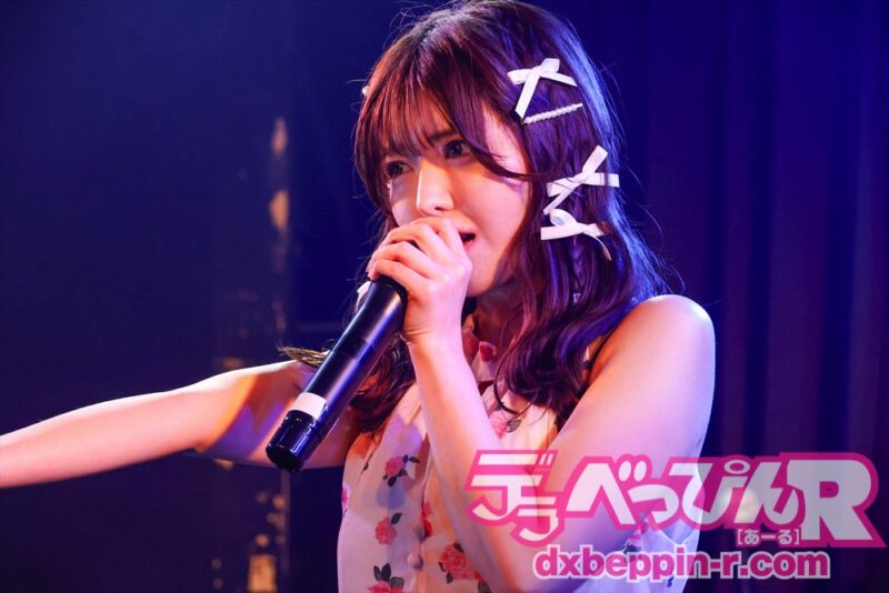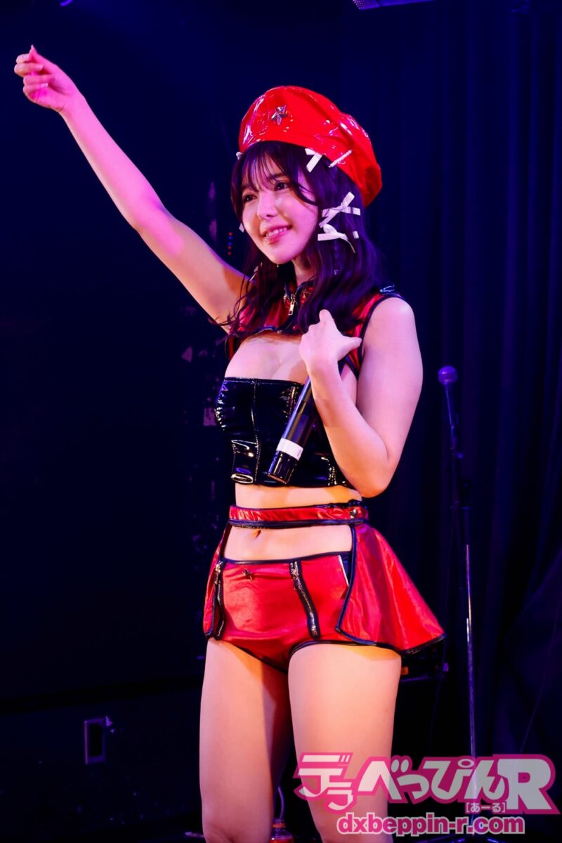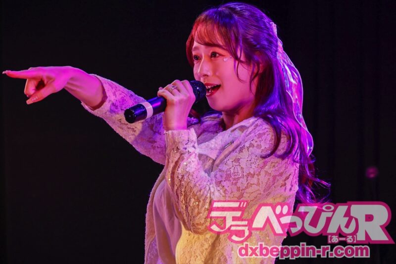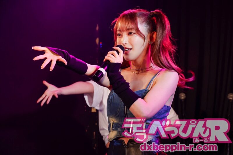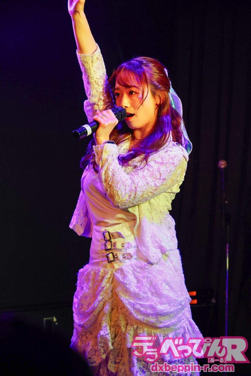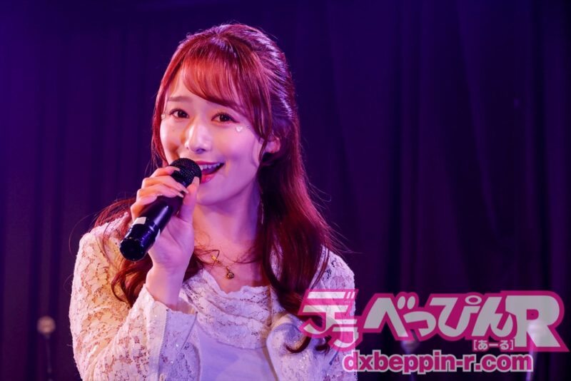 十束るうさんさんは本業のAVだけでなく、最近はライブにも積極的に出演。この日はオリジナルの『ダーリン』と『空を越えて』を熱唱。特に『空を越えて』は初披露でしたが、名曲だけに今後も様々なライブで歌われることでしょう。