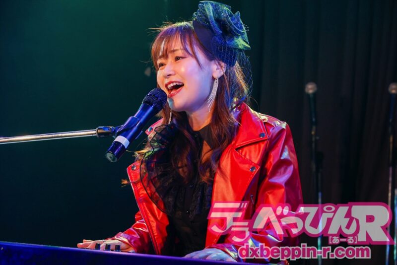 同ライブのオーガナイザーも務めるアーティストの大和姫呂未さんはオリジナルで新曲の『黒歴史』をキーボードで弾き語りし、実力を見せ付けてくれます。2曲目もカップリングの『明日きっとあなたに会いたい』を熱唱し、ファンの視線をステージに釘付けにしてくれました。